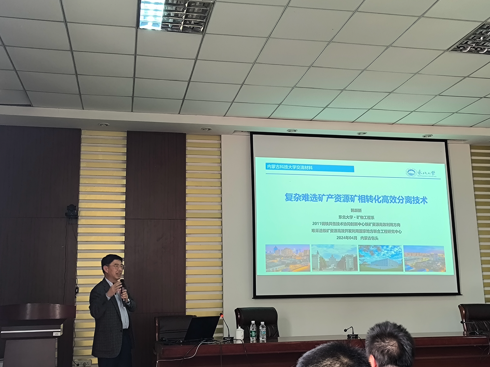韩跃新教授首先介绍了矿产资源与矿业的重要性,分析了矿产资源开发面临的主要技术问题和突破方向,随后介绍了团队在难选铁矿资源氢基矿相转化与高效分选技术、氢基矿相转化(悬浮磁化焙烧)系统装备研发与应用等方面的创新性成果,紧接着介绍了研究成果在赞比亚铁锰矿、阿尔及利亚GARA、酒钢、海南矿业等铁矿的成功应用实践,最后介绍了氢基矿相转化技术在含钒页岩、高碳低硫低砷金矿、氰化尾渣及锂辉石等高效分选方面的技术研究成果。报告会后韩跃新教授与新葡京网址