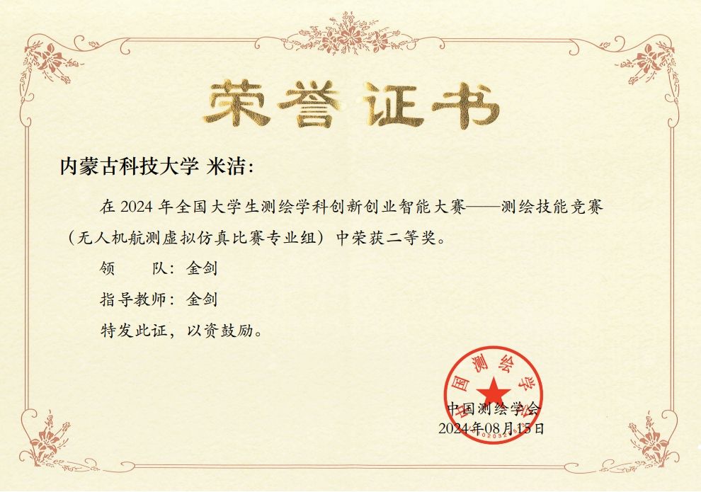 优秀学子米洁从来自全国360所高校的近8000名学生中脱颖而出,获得无人机航测虚拟仿真比赛的全国二等奖。
