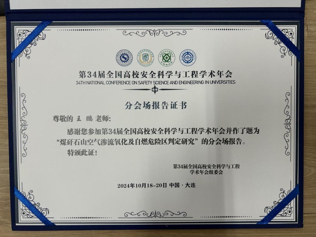 会议围绕安全科学与工程学科领域教育教学、人才培养、学科建设和科学研究等进行研究探讨,同时举办第七届全国高校安全科学与工程青年教师教学大赛。其中王鹏作了题目为《煤矸石山空气渗流氧化及自燃危险区判定研究》的研究分论坛报告。