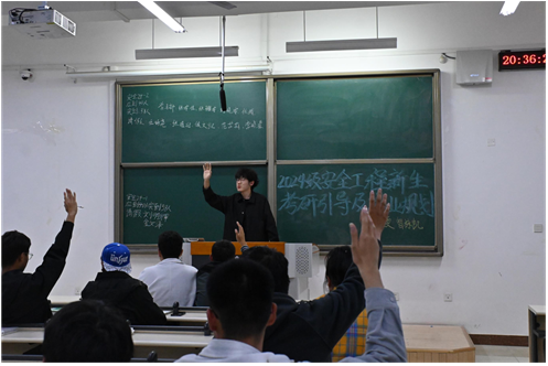 的办学历史、优良学风以及本专业的优势和特色,帮助新生树立对专业的认同感和自豪感。同时,讲解者结合自身的考研经验,详细分析了当前的考研形势,并对新生的学业规划提出了切实可行的建议。除此之外,还分享了如何调节心理压力的方法,帮助新生更好地应对学业和生活中的挑战。