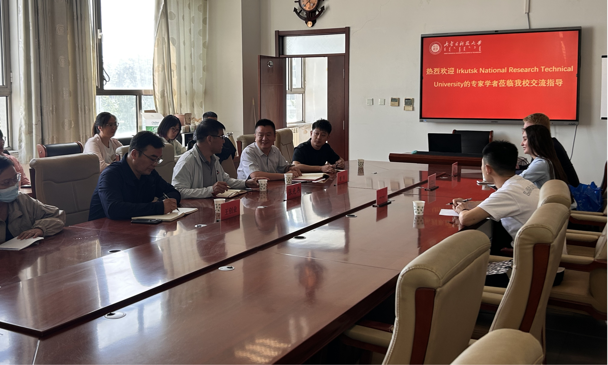 2025年9月9日俄罗斯伊尔库茨克国立理工大学专家学者Alexander Burdonov、Tatiana Sakhabutdinova、Aiqing Wang一行到访新葡京官网网址 开展学术交流活动,会议期间内蒙古科技大学科技处处长曹钊、新葡京网址 院长张光存、副院长王创业及教师代表与到访专家围绕矿物加工领域的前沿技术与合作前景深入研讨,就后续科研合作与立项达成多项共识。