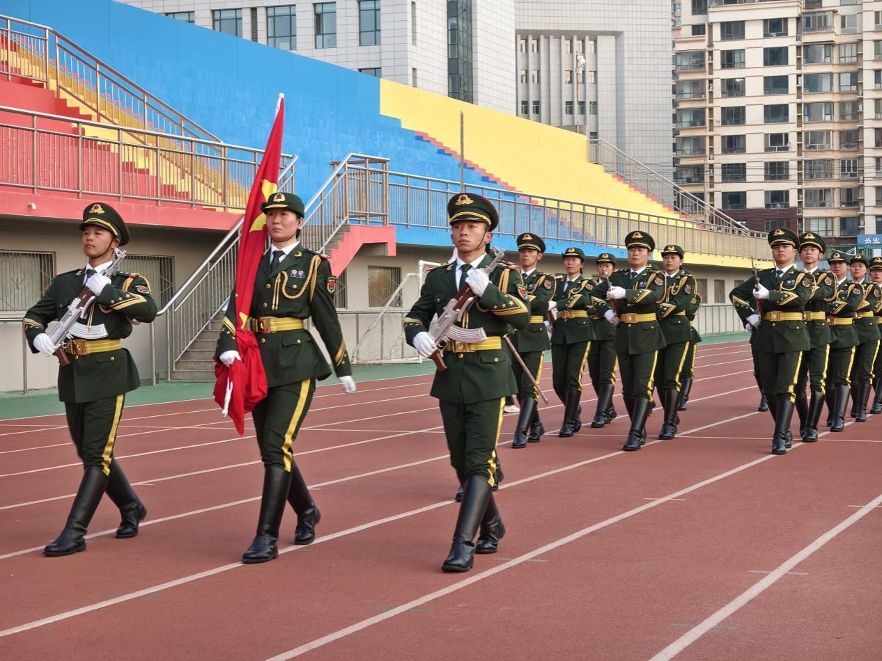 庄严升旗,赤子之心随国旗飞扬。清晨七时整,仪式在肃穆的氛围中正式开始。英姿飒爽的国旗护卫队队员迈着铿锵有力、整齐划一的步伐,护卫着鲜艳的五星红旗走向升旗台。伴随着雄壮激昂的《义勇军进行曲》,升旗手振臂一挥,五星红旗迎风展开,在全场师生深情的注目下,冉冉升起,在晨曦中高高飘扬。这一刻,每一位师生心中都涌动着对祖国无限的热爱与崇高的敬意,强烈的民族自豪感和使命感在心中激荡。
