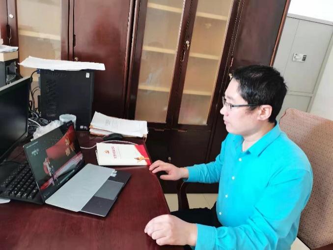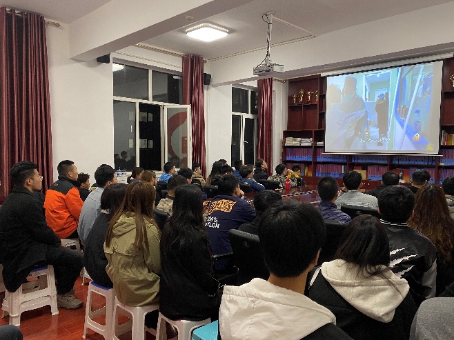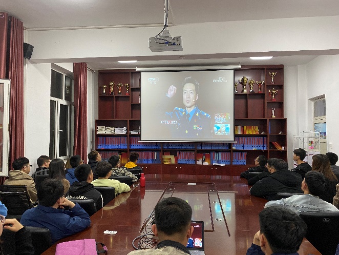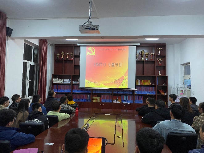 在临曦楼二楼党员之家组织学生党员和入党积极分子利用钉钉平台,采用现场集中学习和线上分散学习的方式观看《榜样5》专题节目。