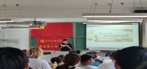 学生第三党支部在临曦楼209教室开展积极分子专题理论学习,本次学习的主题是:奋力走好新时代的长征路。领学人:王世鹏同志