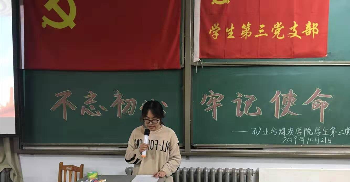 学生第三党支部在临曦楼合四教室举办"不忘初心、牢记使命"主题演讲活动,充分发挥党支部的战斗堡垒作用和党员的先锋模范作用,深入学习贯彻落实“不忘初心、牢记使命”主题教育精神。