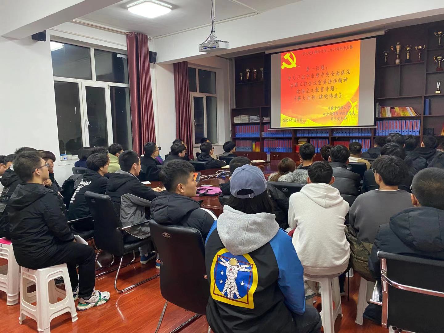 为大力弘扬爱国主义精神,新葡京网址 党总支于2020年1119日晚上19:30,在临曦楼二楼党员之家线上线下同步开展专题理论学习活动。本次学习内容是:第一议题:学习习近平出席中央全面依法治国工作会议重要讲话精神;爱国主义教育专题:观看《薪火相传-建党伟业》视频。