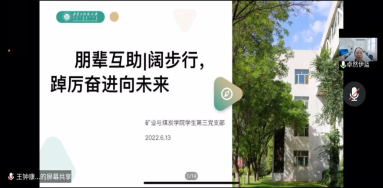 2022年6月,新葡京网址 学生第三党支部于腾讯会议平台召开“朋辈互助|阔步行,踔力奋进未来”主题党日活动。