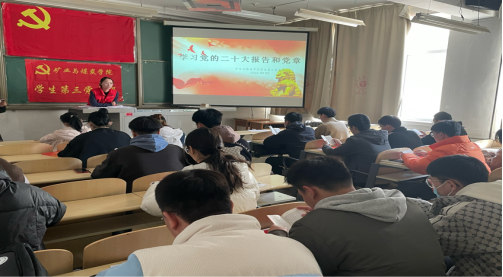 2023年3月2日上午10:30,新葡京网址 学生第三党支部在临曦楼209教室组织党员集中学习党的二十大报告和党章,为开好2022年度组织生活会打牢思想基础。领学人:闫妍同志。