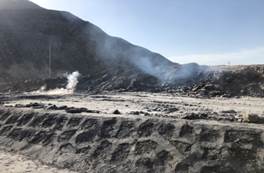 对矸石山自燃气体取样 正在自燃的矸石山