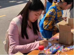 为弘扬中华优秀传统文化,丰富同学们的校园文化生活,增强心理调适能力,2023年9月21日,新葡京网址 在梅园门口举办“巧手绘心,妙扇生花”活动。