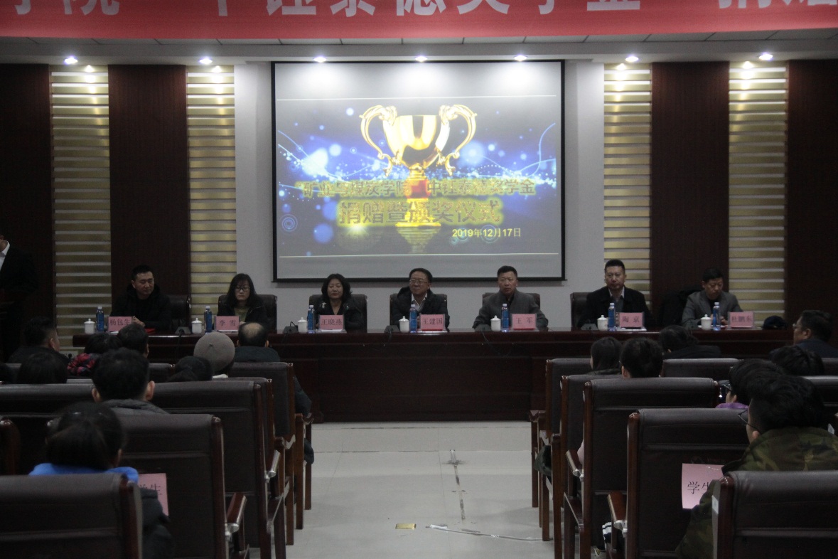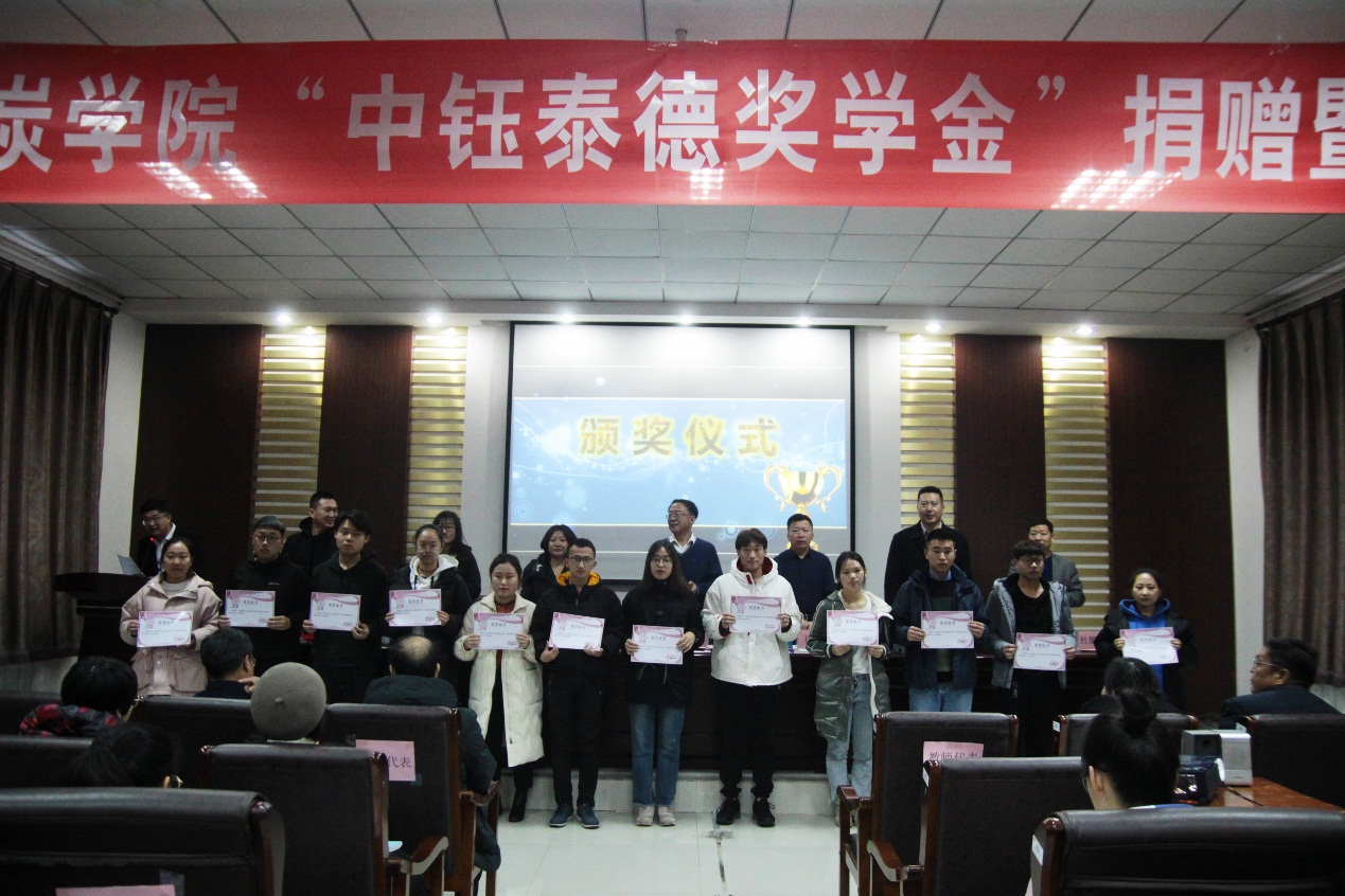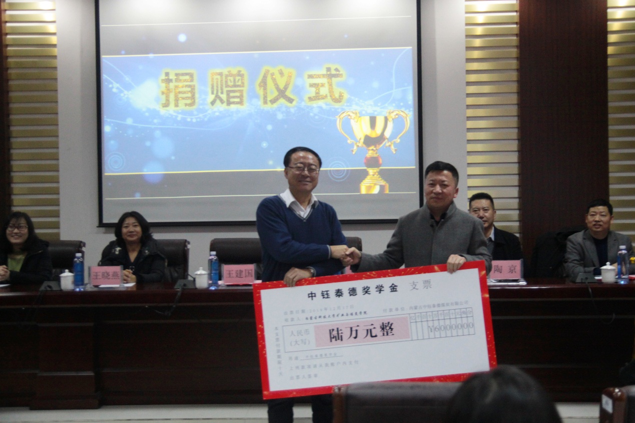 在实验实训楼会议室举行了“中钰泰德奖学金”捐赠暨颁奖仪式。出席本次会议的领导有:内蒙古中钰泰德煤炭有限公司董事长兼总经理王军、副总经济师王晓燕、人力资源部经理陶京、人力资源部社保主管李雪;新葡京网址