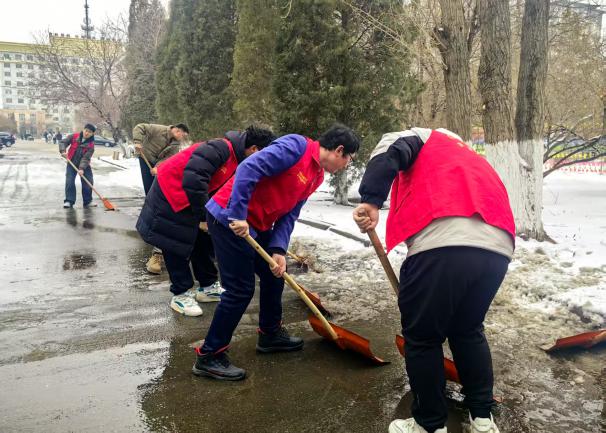 2025年3月4日,新葡京网址 组织教师、学生党员、学生干部开展清扫冰雪志愿服务活动。