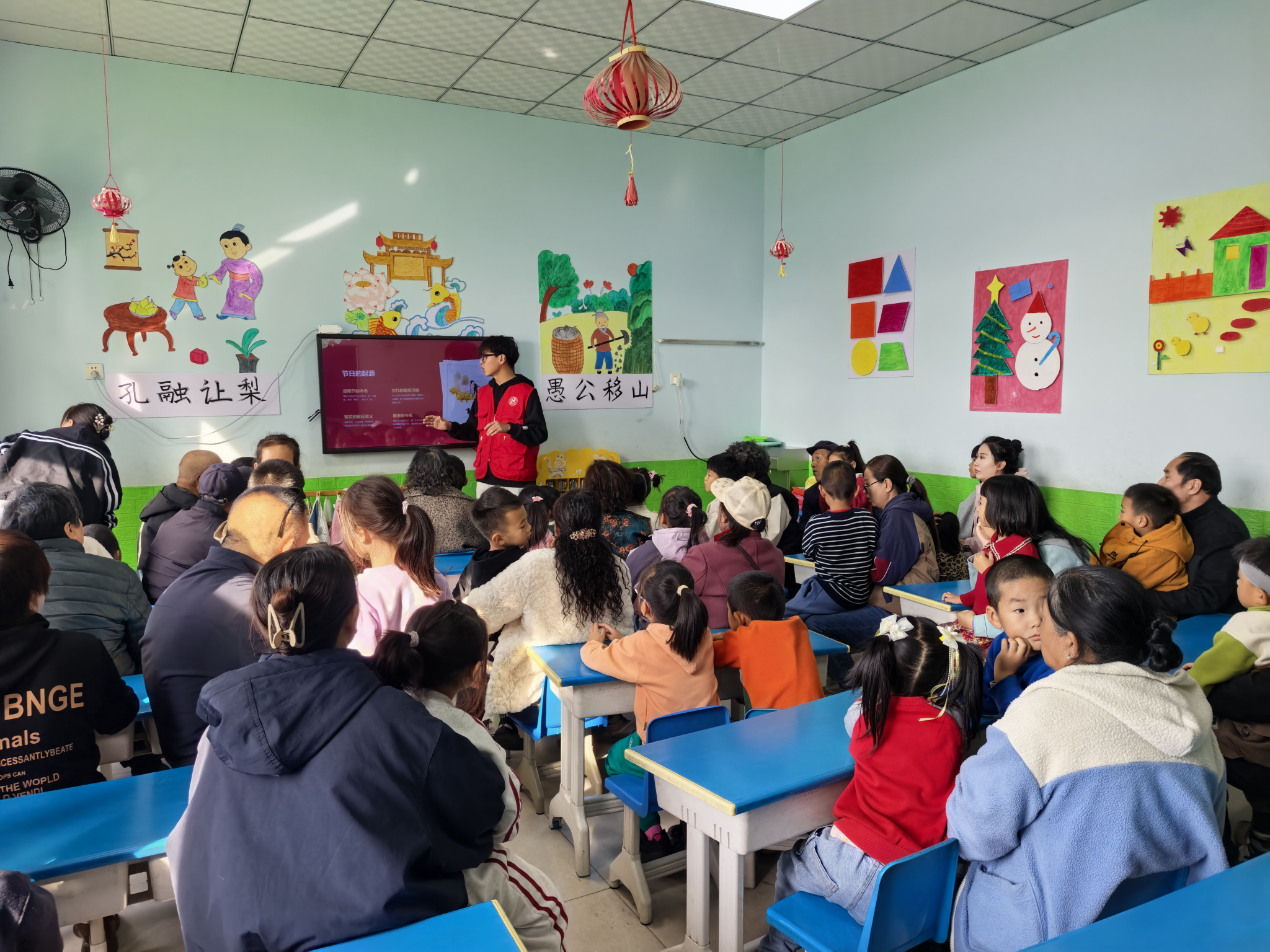 坚持思想引领方向,理论指导实践,辅导员王昊岩老师从活动背景与意义,中华文明精髓解读,青年传承实践路径,以及未来行动倡议这四个方面,为我们同学做出深刻且有教育意义的指导,并切实通过“青春筑暖巢,童声贺重阳”主题志愿活动,指明了中国传统文化根与魂的辩证统一及优秀传统文化的创造性转化,始终鼓励同学们做千年文化的传承者与发扬者。