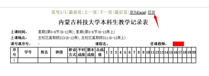 4、弹出的新窗口中点击打印教学记录表
